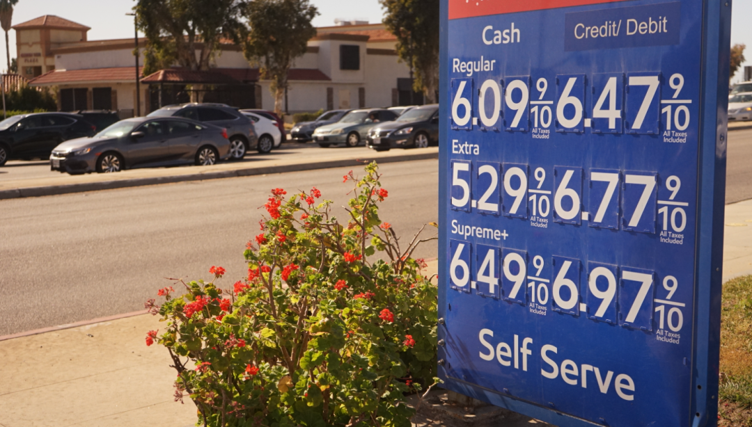 ▲这是3月20日在美国加利福尼亚州洛杉矶县拍摄的一处加油站显示的油品价格。美国洛杉矶县的普通汽油均价20日上涨至每加仑5.982美元,再创新高。这是当地油价连续第26次上涨。图/新华社